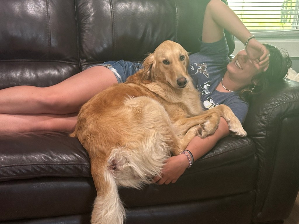 Dixie is a daughter of Bella and the stud we previously used! She has Bella’s amazing personality and will pass that on to all of her puppies. She will carry on Bella’s legacy when she retires in 2024.