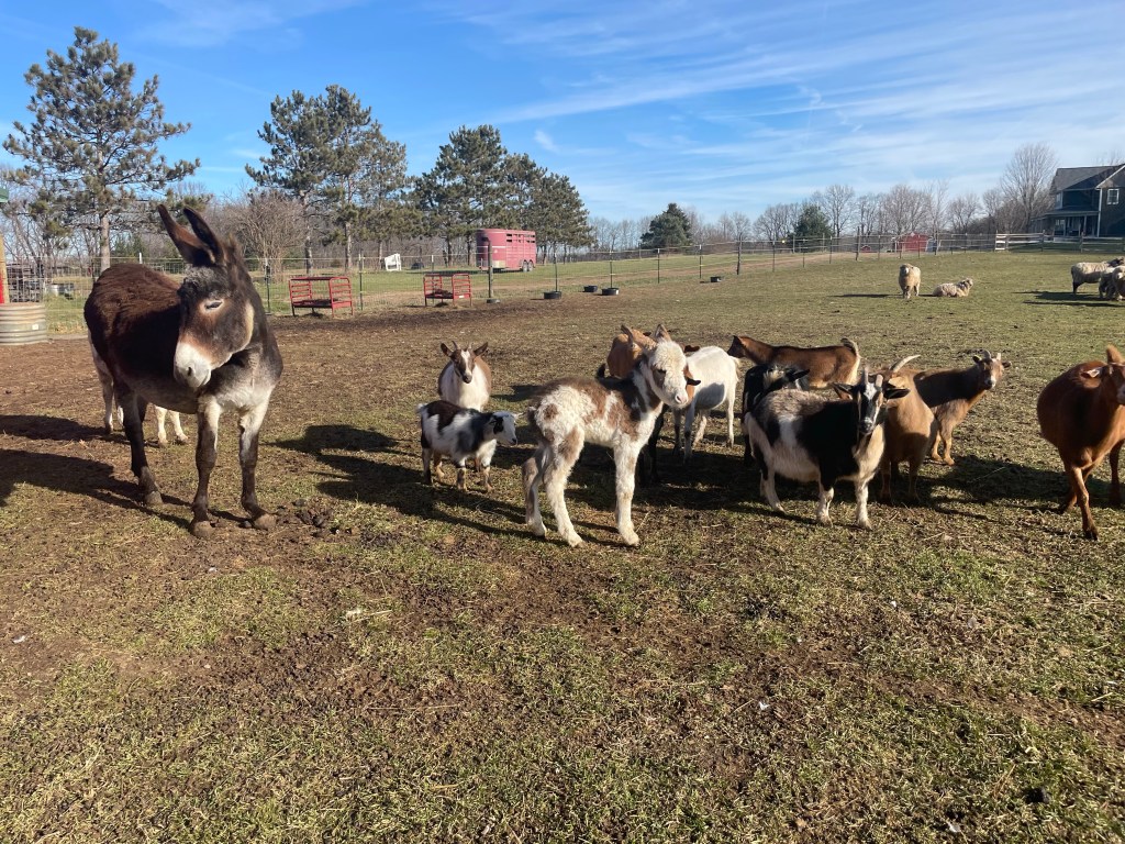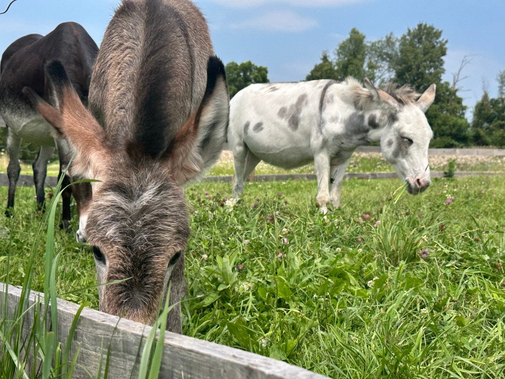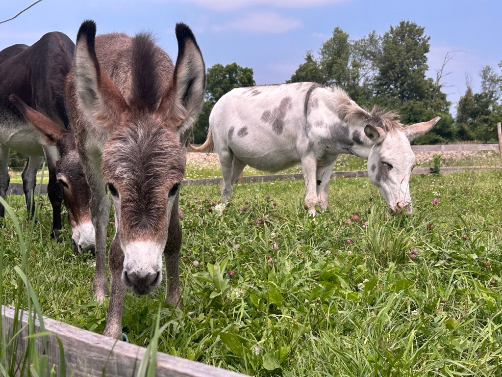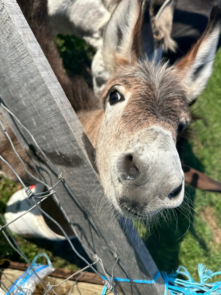 Donkeys are similar to horses but in sooo many ways 100% different. They radiate a calming aura when you are around them. They do not startle easily and are very curious. They do best on a dry lot and strive for attention. We have a baby born on the farm every 16-18 months and it’s always a special treat when they are born 💜