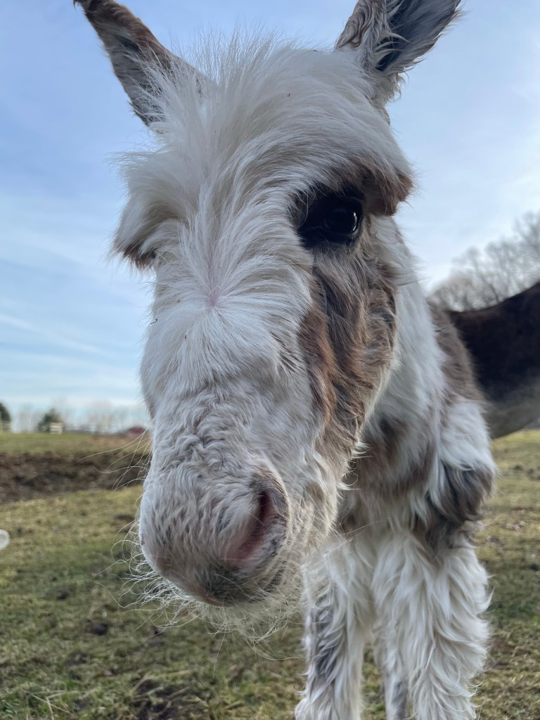 In 2014 I was given the opportunity to take in two donkeys! Sunny and Delight came home with us and I instantly fell in love. Shortly after I was offered our Jack MO! Everyone that visits the farm knows Mo and has heard him call. He lets us know when anyone arrives with his loud bray. And if Mo needs something he makes sure the world knows 🤣