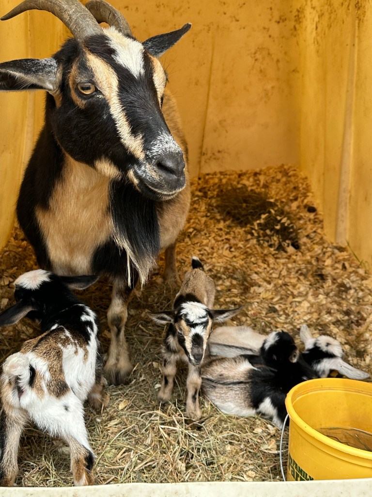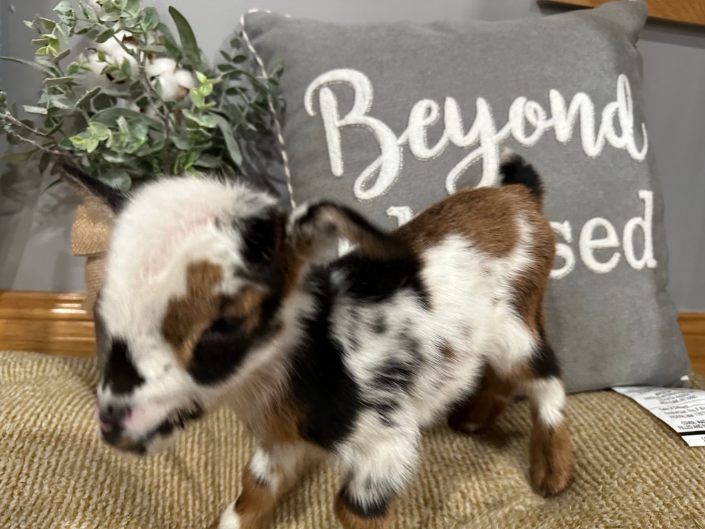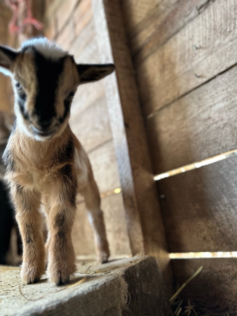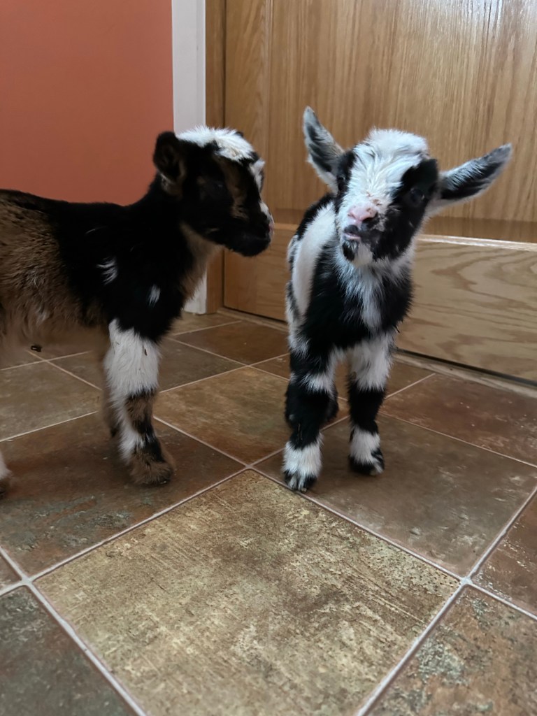 We raise both ADGA registered and non-registered goats. Here at Spraggins Sweet Acres we keep an annually tested, clean herd. We test for CAE, Johnnes and CL. We strive for quality and happy goats. We offer a little bit of every price point and style here for everyone! Proof of testing is always available upon request. When kidding starts every January, we always end up with at least a few house bottle babies ❤️ Our golden mama Bella makes it her job to keep them company.